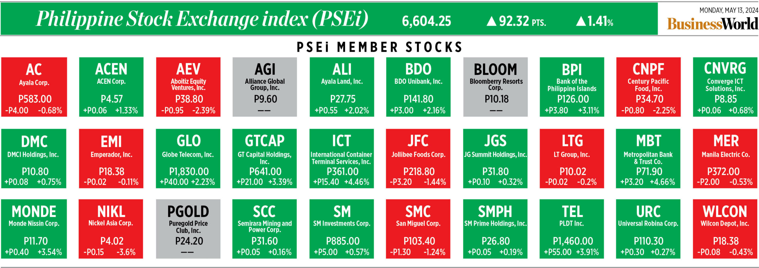 Here’s a quick glance at how PSEi stocks fared on Monday, May 13, 2024.