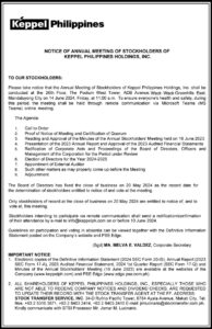 Keppel Philippines Holdings to hold annual stockholders’ meeting remotely on June 14 – BusinessWorld Online