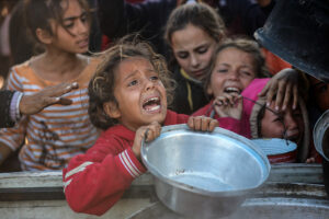 PALESTINIANS gather to receive food cooked by a charity kitchen in Khan Younis, Gaza Strip, in the midst of the Gaza-Israel conflict, on Dec. 1, 2024. — REUTERS/MAJDI FATHI/NURPHOTO