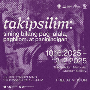 THE Human Rights Violations Victims’ Memorial Commission is launching an exhibition in line with Museums and Galleries Month. Takipsilim: Sining bilang Pag-alala, Paghilom, at Paninindigan will open on Oct. 16, at 1:30 p.m., at The Freedom Memorial Museum Gallery, 150 Corporate Center, Panay Ave., Quezon City. Martial Law survivors and relatives will be in attendance. The exhibit will feature artworks created during the “Sining at Kwentuhan: Expressive Arts Session with Martial Law Survivors Workshop” conducted in March. There, the survivors/artists and expressive arts facilitators translated their stories into artworks. The exhibit runs until the end of October. Admission is free.
