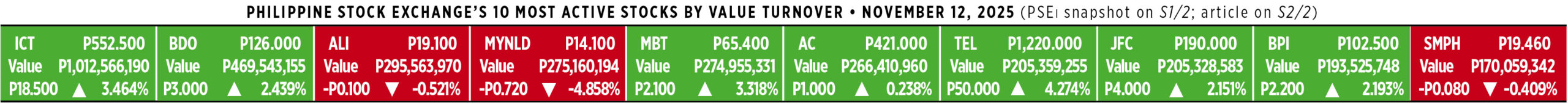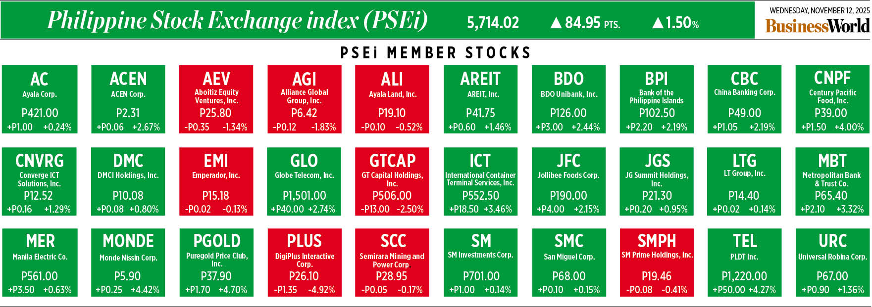 How PSEi member stocks performed — November 12, 2025 – BusinessWorld Online