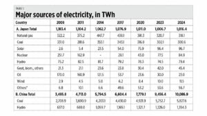 Today, Japan is suffering from declining power generation, going from an all-time high of 1,183 TWh in 2008 to 1,016 TWh in 2024. This is a trend shared by all G-7 countries except the US. In contrast, all Asian countries seen an increase in power generation, led by China with 10,087 TWh in 2024 or nearly 10 times that of Japan and 2.2 times that of the US. Vietnam has tripled its power generation from 2011 to 2024, just 13 years.