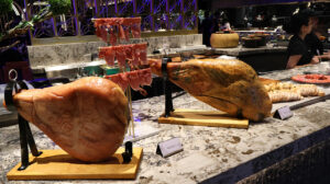 We did like the Italian station (spooning oxtail ravioli with the rich broth didn’t take that long), the noodle station (the duck noodles were excellent), and the carving station (our lamb and our steak were great, if a little bit thin, but we’re docking points for the horseradish sauce which lacked a kick). We give plus points for having food not normally found at buffets (who has the time to fold all that ravioli?). We offer them the grace of first-day jitters, and, well, years of experience backing up the other guests tasting their offerings.
